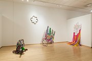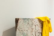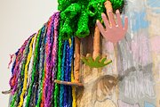 Reclaimed plastic, found cardboard, terracotta, porcelain slip, oil paint, acrylic, chalk pastel
