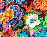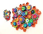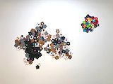 “We the Flower Field” intertwines craft and fine art processes with upcycling and personal narrative. The work contains hundreds of flower forms made of hand-built porcelain roses as well as crocheted plastic that was collected in Philadelphia, Pennsylvania and Alamogordo, New Mexico.