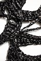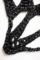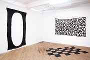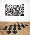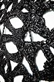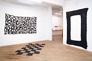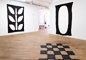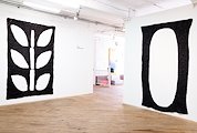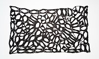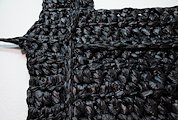 The series consists of plastic bags crocheted into blankets made up of bold, dynamic, geometric shapes. The forms hover between absence and presence and are shaped as much by negative space as by the material. The medium, too, speaks to the subject in that it takes an environmentally hazardous byproduct of capitalist convenience and reimagines it for a new practical purpose with optimistic potential.